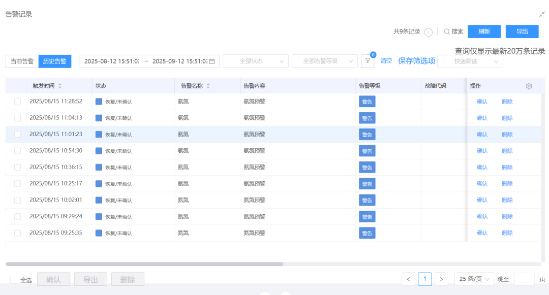 支持上傳數據與導出歷史數據,支持斷網緩存,網絡恢復自動補齊保證歷史數據完整不丟失。